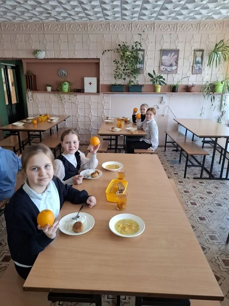 В рамках мероприятия каждый день в школьной столовой ребятам выдавали свежие фрукты: яблоки, апельсины и др.